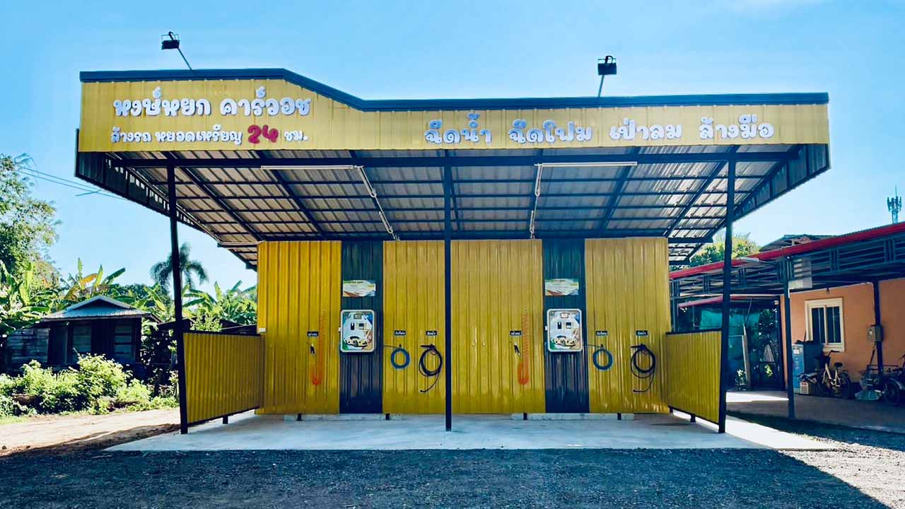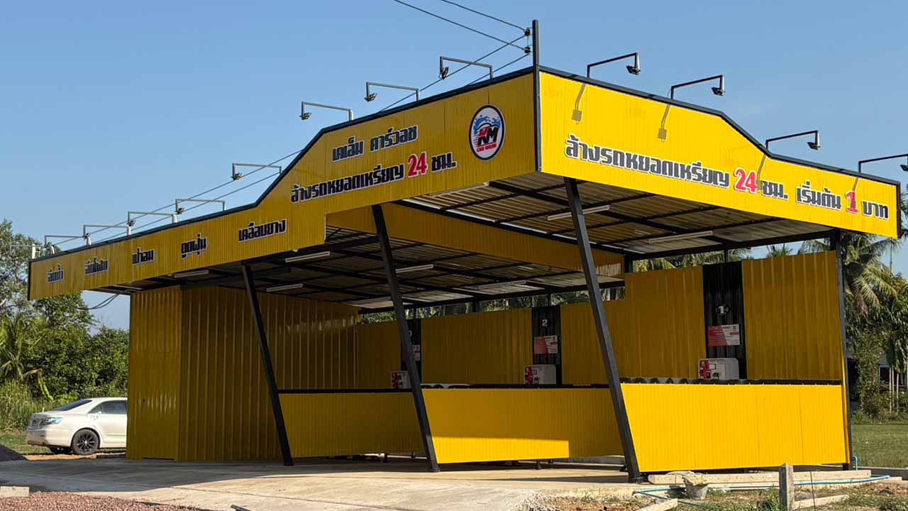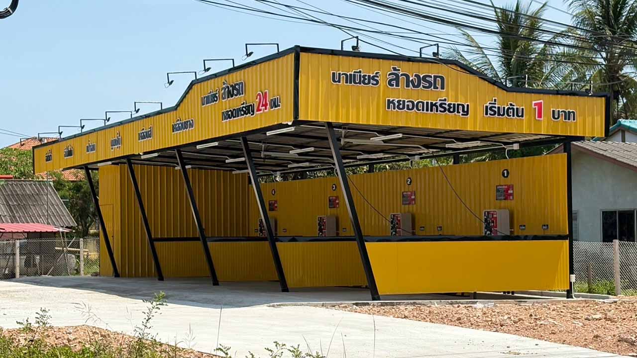 ล้างรถหยอดเหรียญออกแบบร้านสีเหลือง